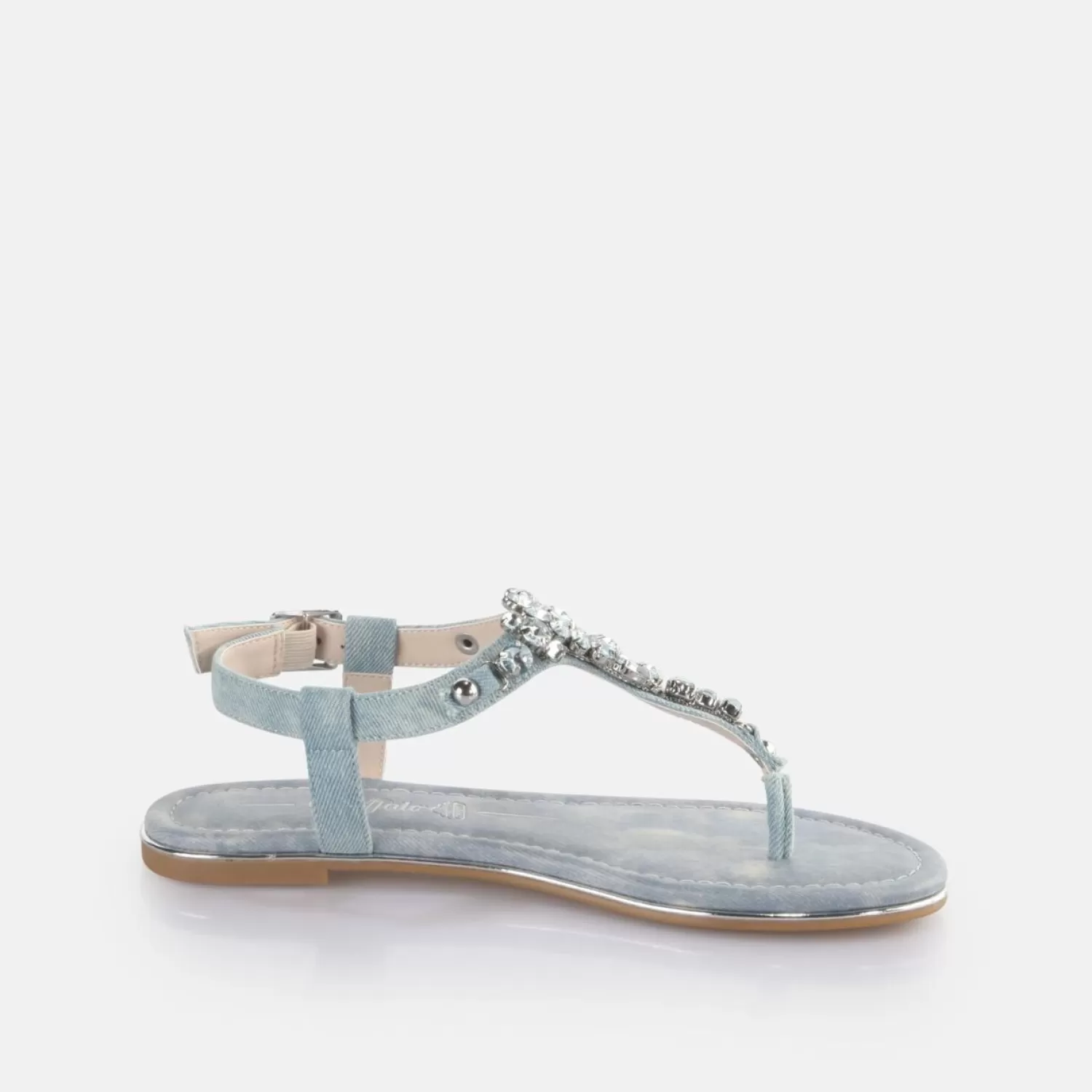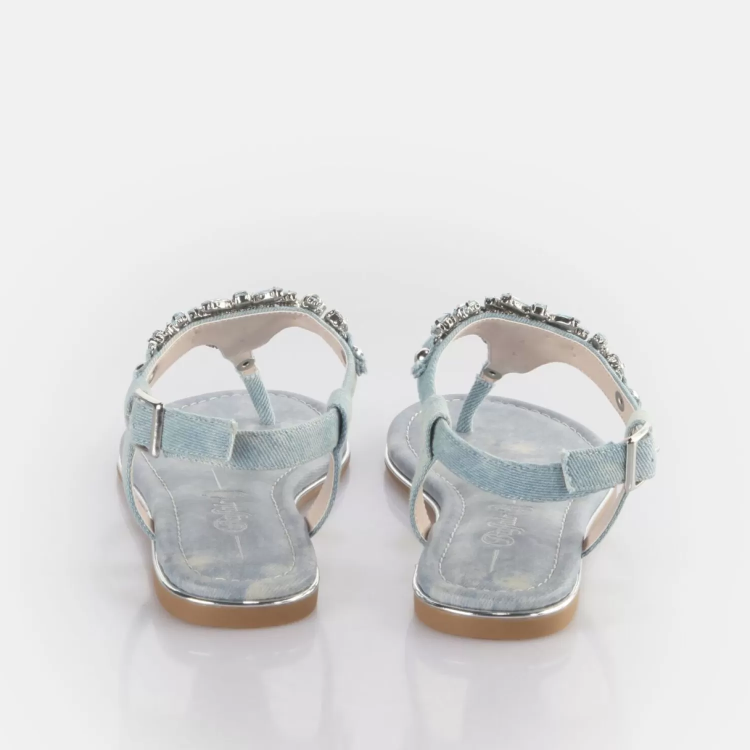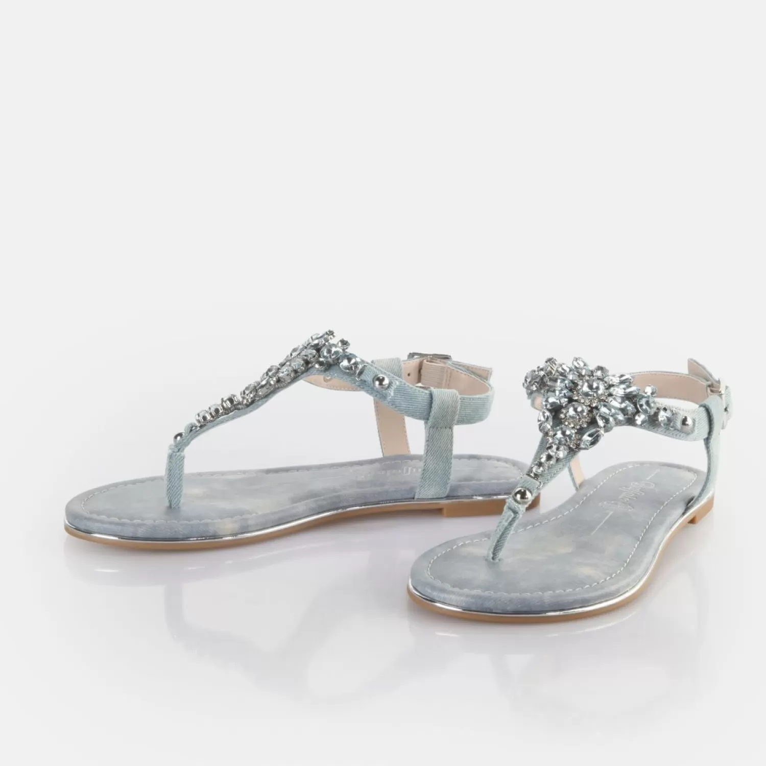 Vegan Textile Material And Glittering Rhinestones Immediately Catch The Eye In These Capri Glam Sandals. Invisible But Nonetheless Noticeable Is The Exceptional Comfort Offered By These Flat Thong Sandals. They Are Especially Lightweight And Feature An Insole Padded With Memory Foam. The Colour Combination Of Cool Water And Denim Blue Creates The Perfect Chilled Look For Hot Days. To Support Animal Welfare In The Production Of Our Footwear, We Manufacture The Capri Glam Sandals Exclusively From Vegan Raw Materials. Features: Lightweight Design Completely Vegan Insole With Soft Memory Foam