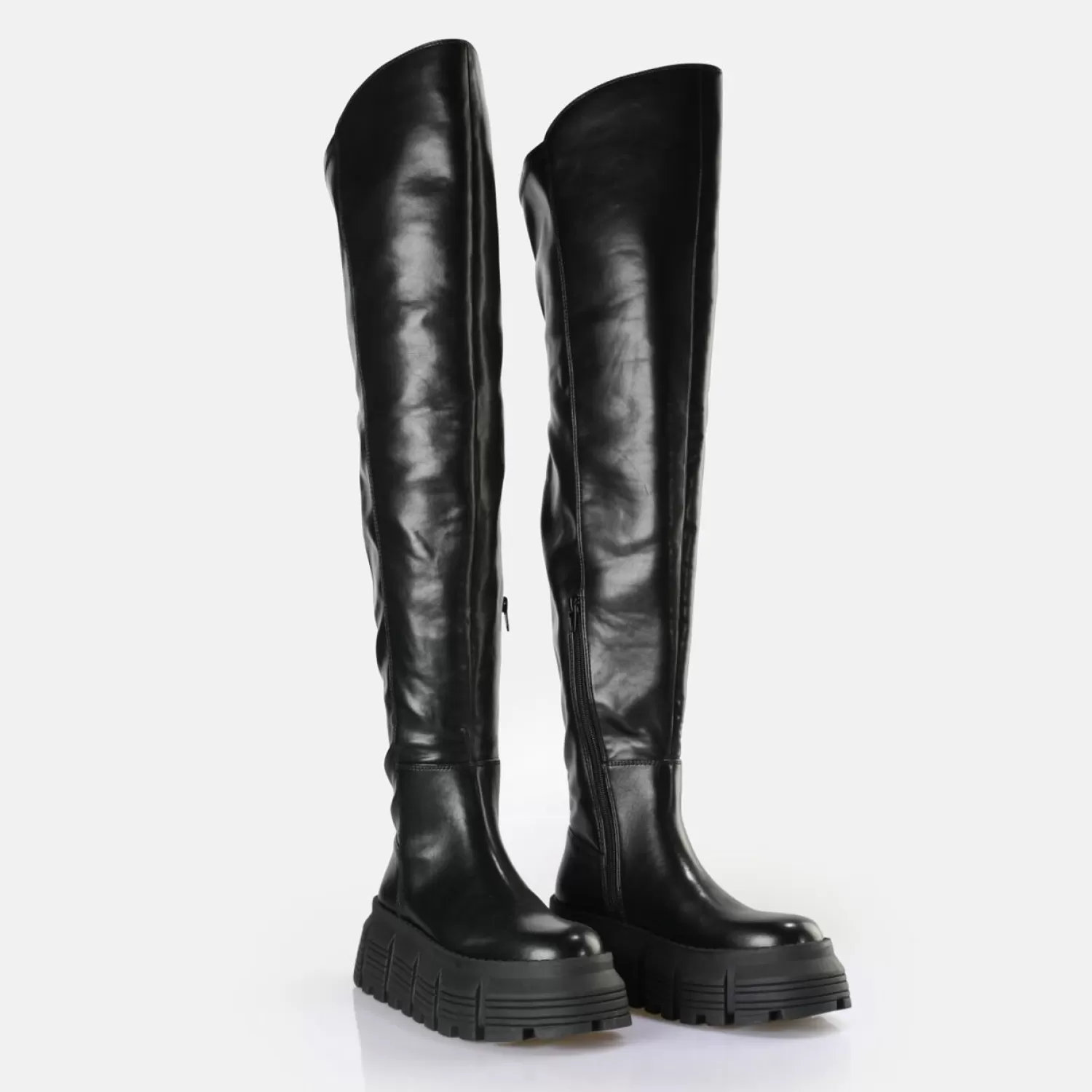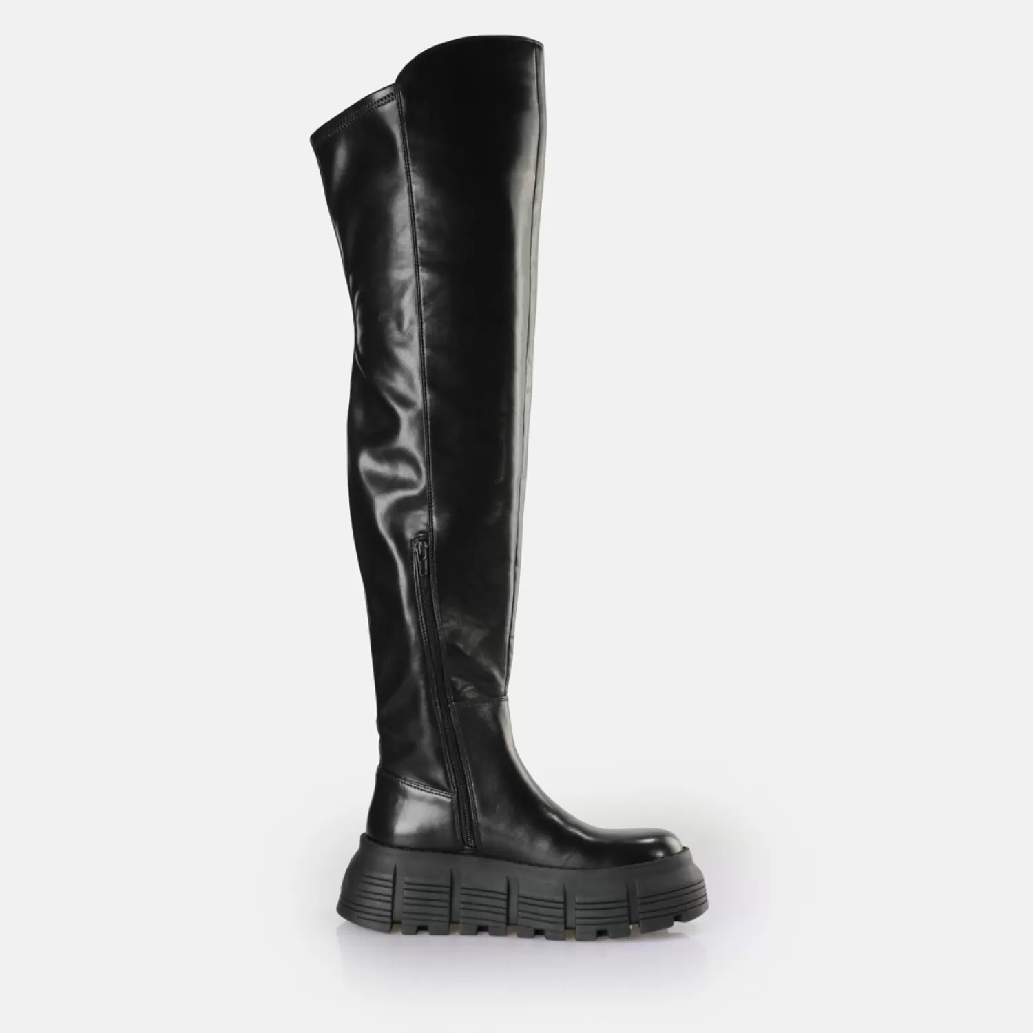 Our New Ava Overknee Boot Comes With A New Look. The Extra-High Platform Sole And Statement Design Let You Make A Strong Statement. The Sturdy Outsole Offers A Perfect Contrast To The Timeless And Clean Design Of The Vegan Boot. At The Same Time, The Comfortable Memory Foam Insole Ensures Maximum Comfort. Combine The Overknees With A Casual Oversize Sweater. Features: Stylish Overknee In Vegan Nappa Leather Look Perfect Fit Thanks To Memory Foam
