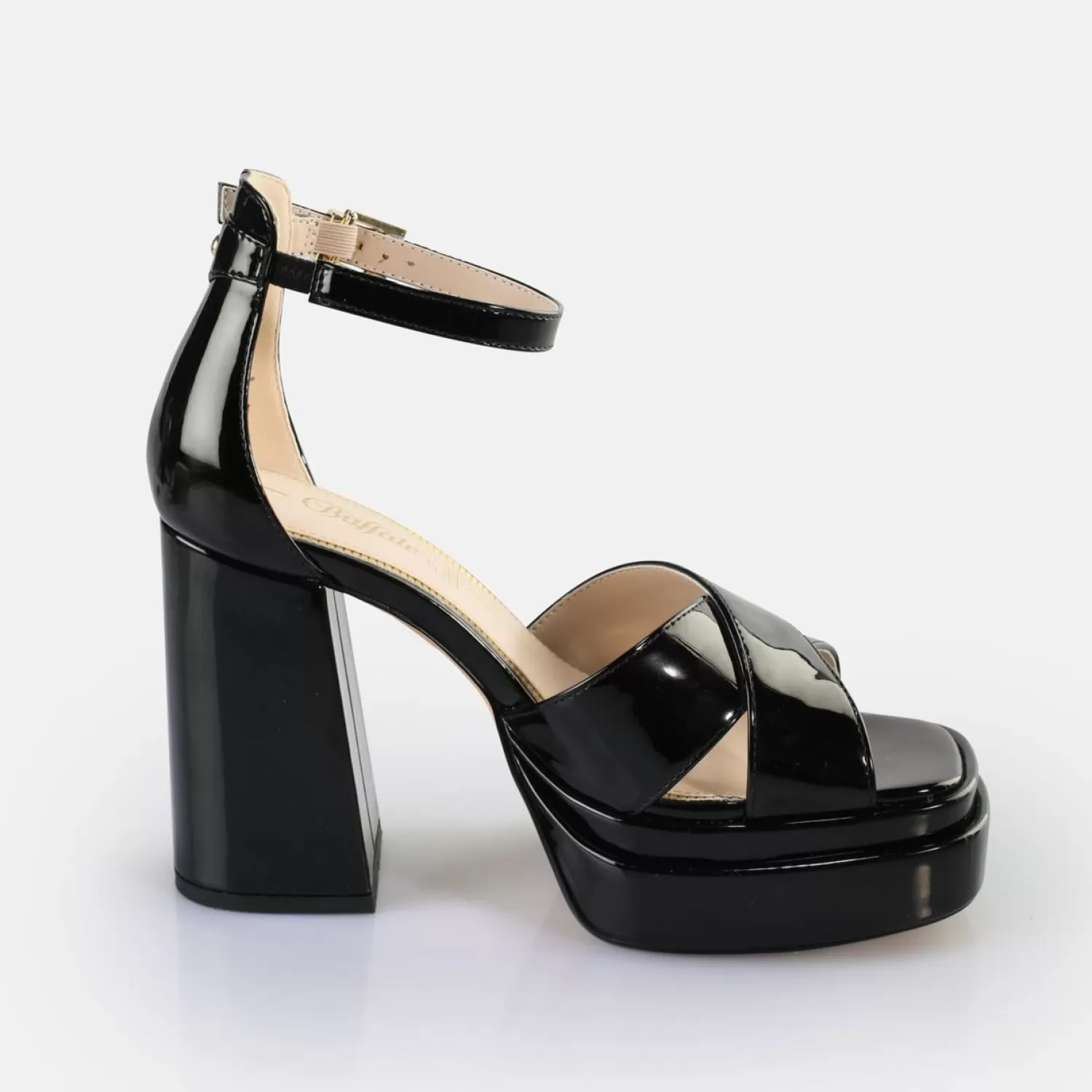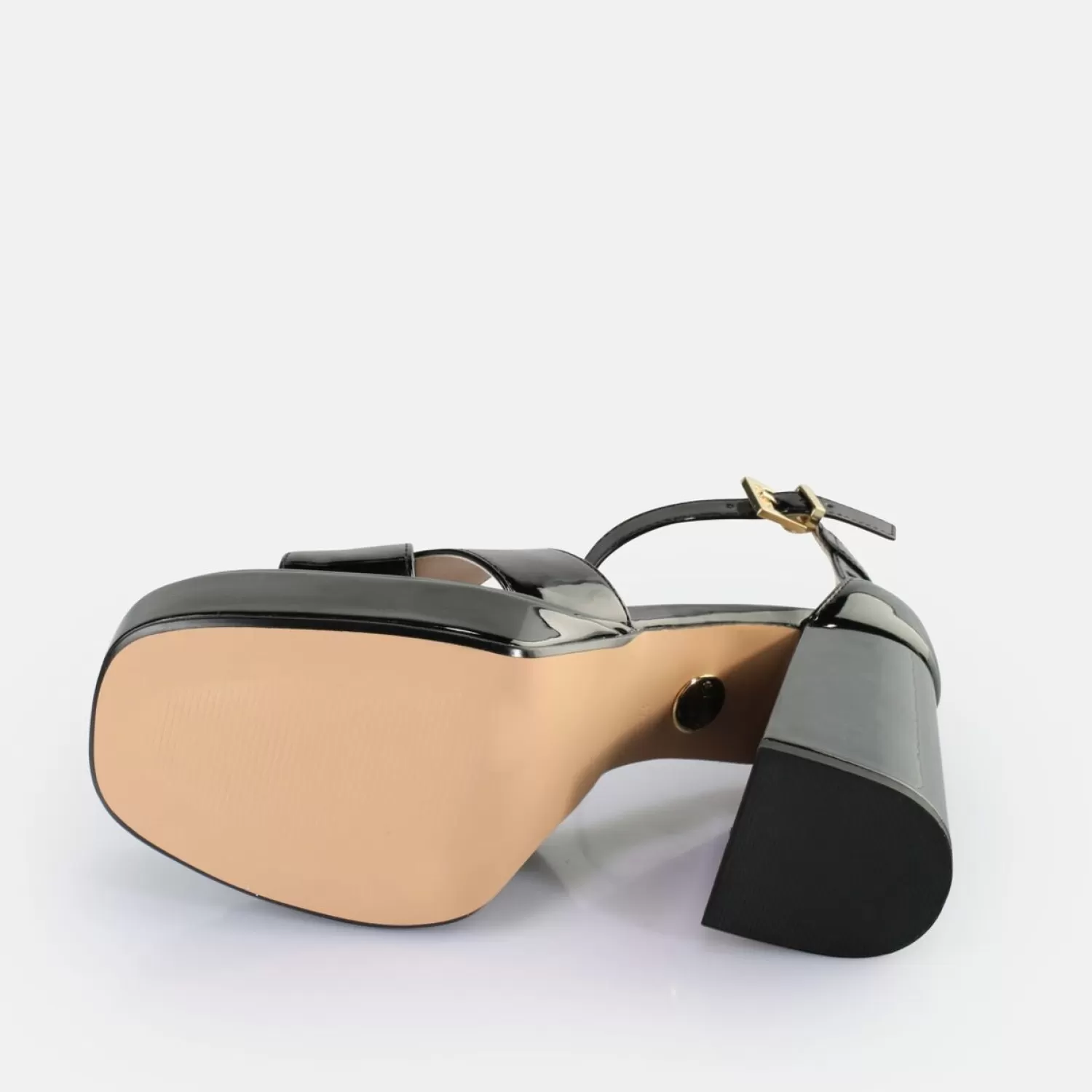 The May Cross Heeled Sandals With Their Shiny Black Straps Are The Ideal Elegant Shoes If You Love Platform Soles And Hi…