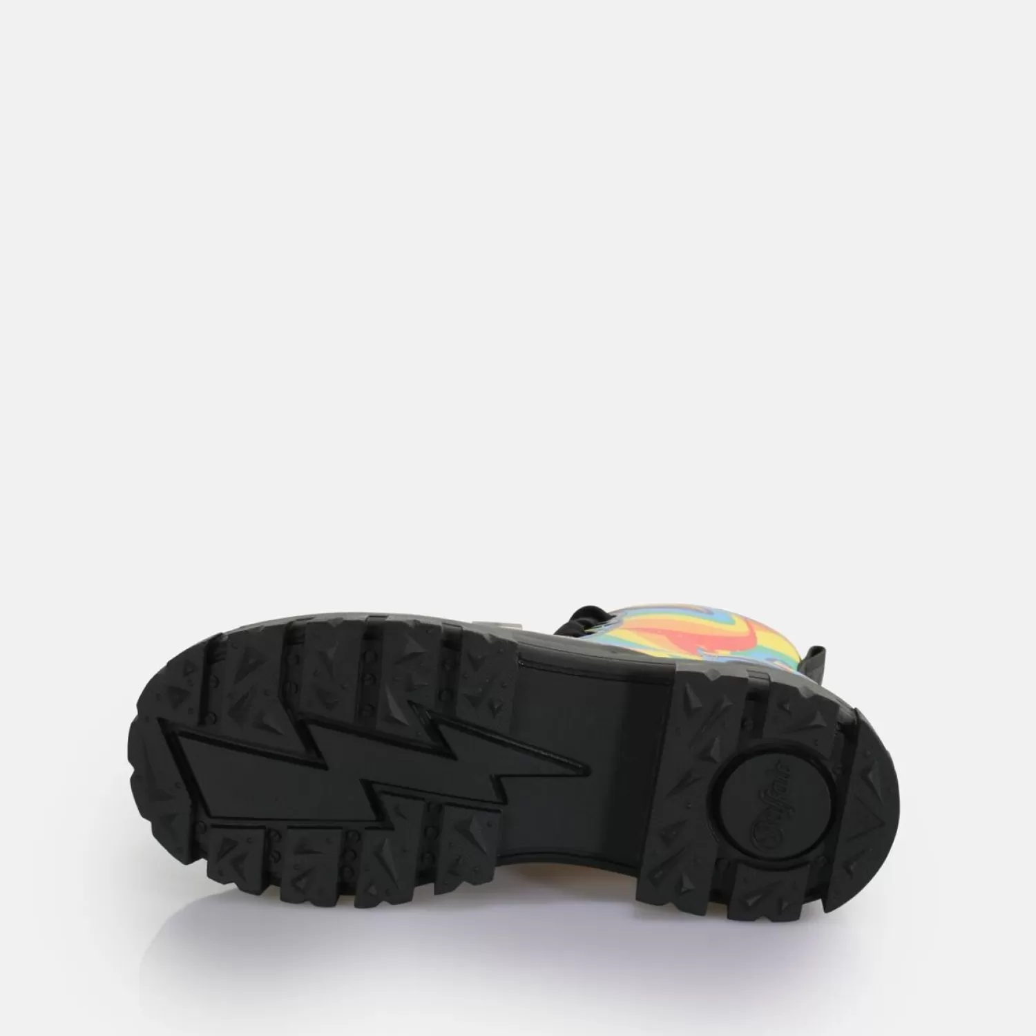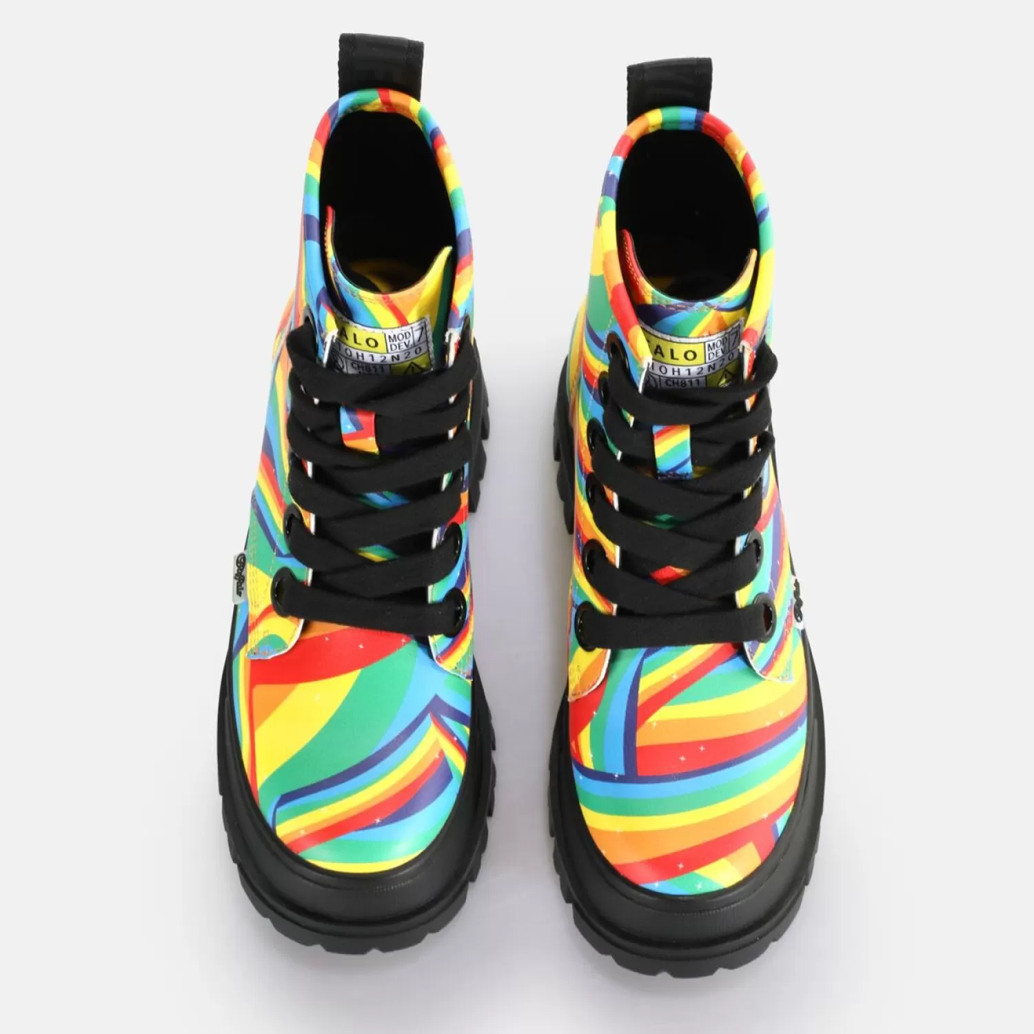 Need A New Look? The Aspha Lace Up Hi Ankle Boot Adds A Colourful Highlight To Your Outfit. A Gorgeous Rainbow Design Adorns This Boot For A Cool And Individual Look. Besides The Unique Design, These Vegan Boots Feature An Impressive Water-Based Material. The Removable Memory Foam Sole Ensures You Feel Like You Are Walking On Clouds. Features: Vegan Water-Based Ankle Boot Removable Footbed Memory Foam Sole