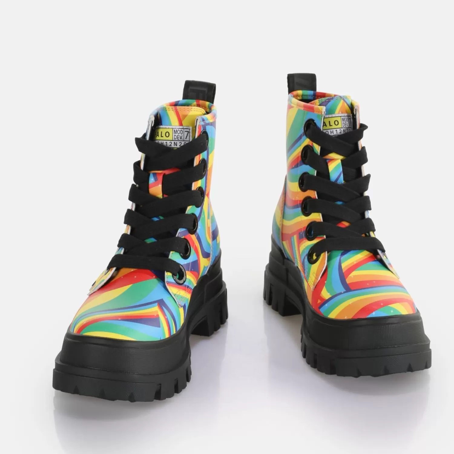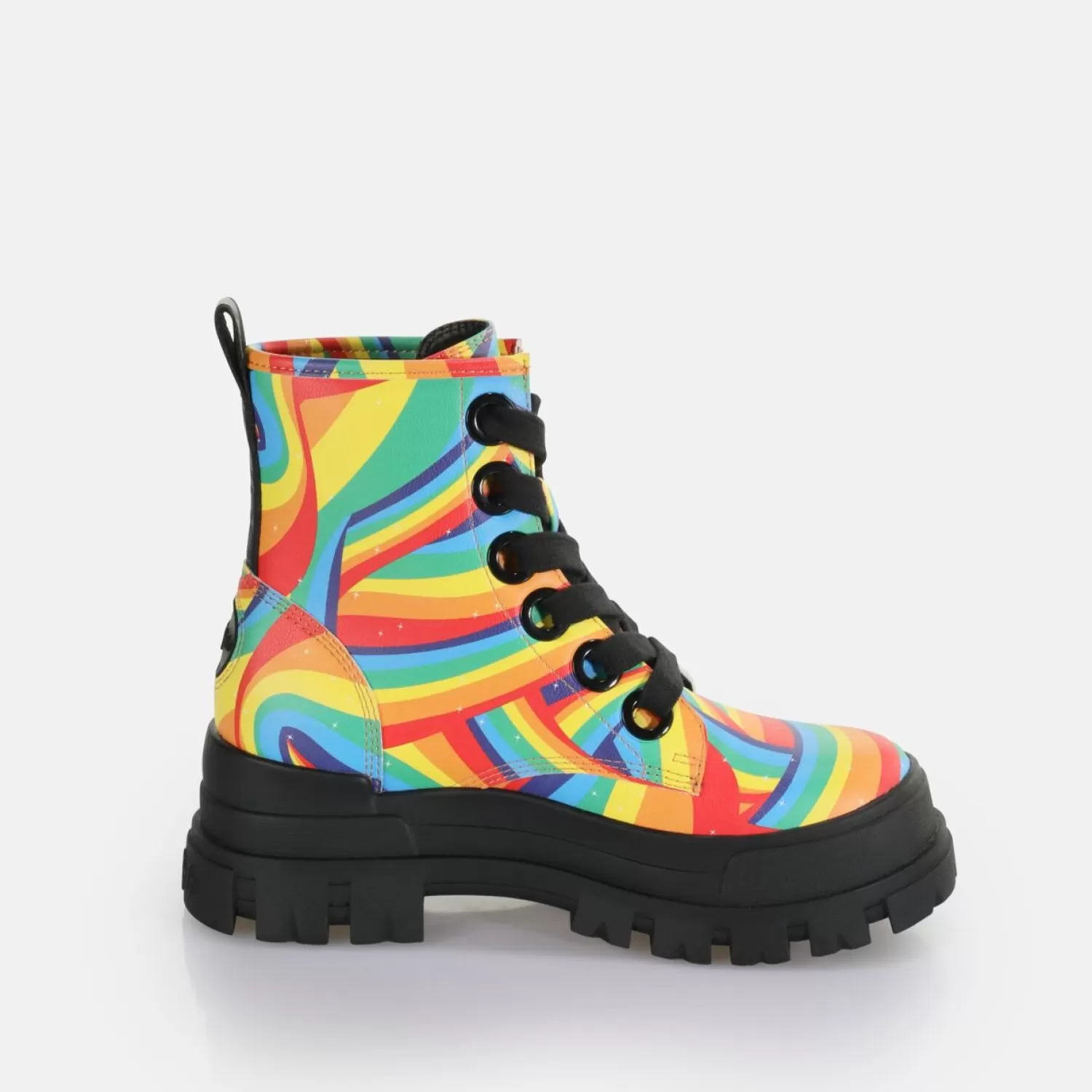 Need A New Look? The Aspha Lace Up Hi Ankle Boot Adds A Colourful Highlight To Your Outfit. A Gorgeous Rainbow Design Ad…