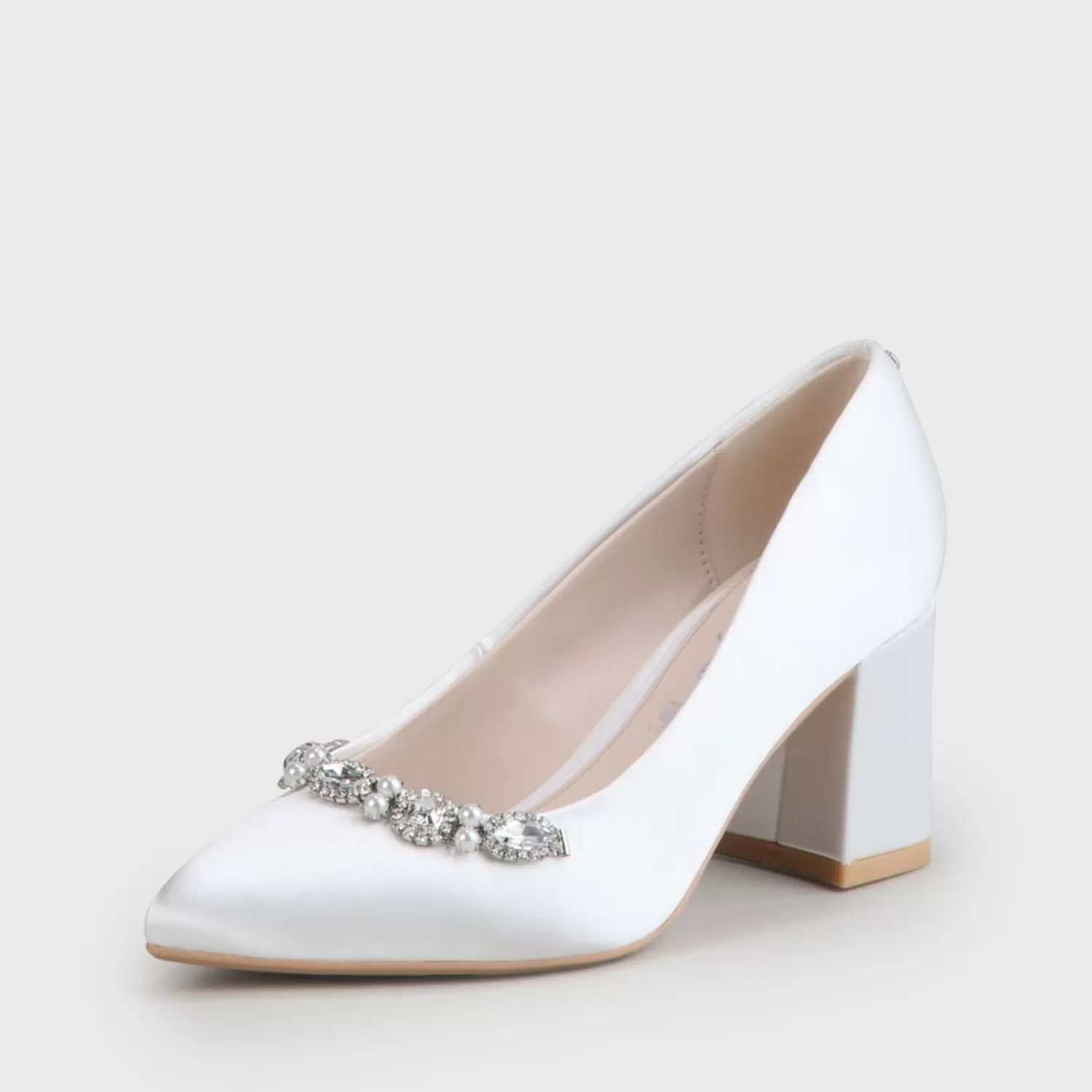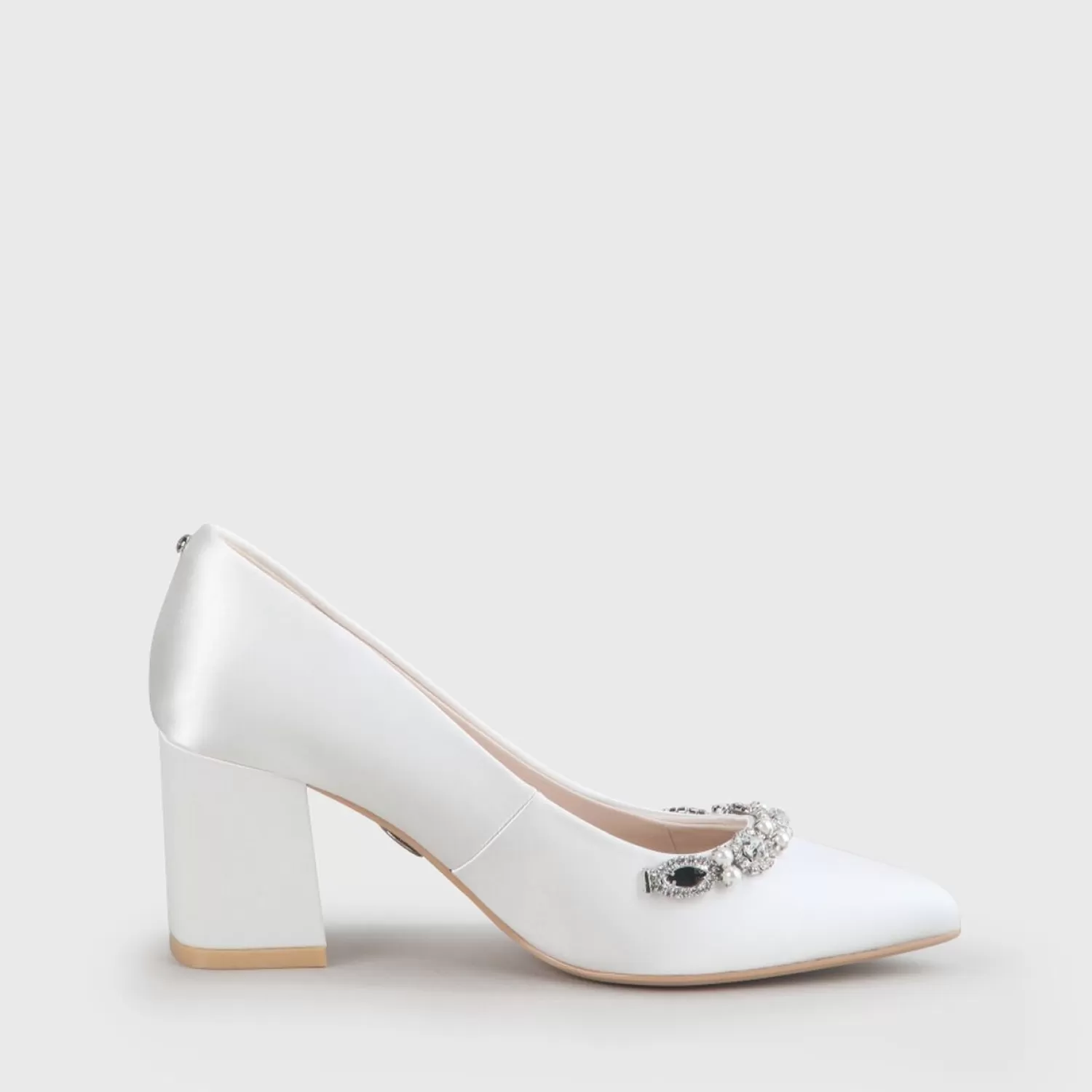 Timeless Elegance For Timeless Love: With Its Classic Shape And Comfortable Square Stacked Heel, The Ester Pump Gives You Breathtaking Glamour In Any Location. The Shimmering Satin In Trendy Ivory Gets A Stylish Upgrade Through Sparkling Crystals And Pearls. Features: Satin In Ivory Pearls And Crystal Applications Pointed Toe 6.5-Cm Square Stacked Heel Memory Foam Leather Sole
