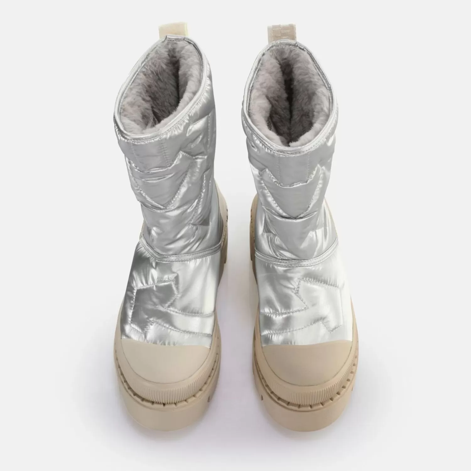 Looking For That Wow Factor? This Is Guaranteed With The Vegan Raven Snow Boot Ankle Boots. This Boot Shines In A Silver Design And Is An Eye-Catcher Par Excellence. In Addition, It Features Recycled Materials And A Deep Treaded Sole. The Boots Are Particularly Comfortable Thanks To The Removable Cover Sole Made Of Memory Foam. Give Your Winter Outfit The Finishing Touch With These Boots. Features: Ankle Boots In Vegan Nylon Made From Recycled Materials Memory Foam Sole For A High Level Of Comfort Removable Insole