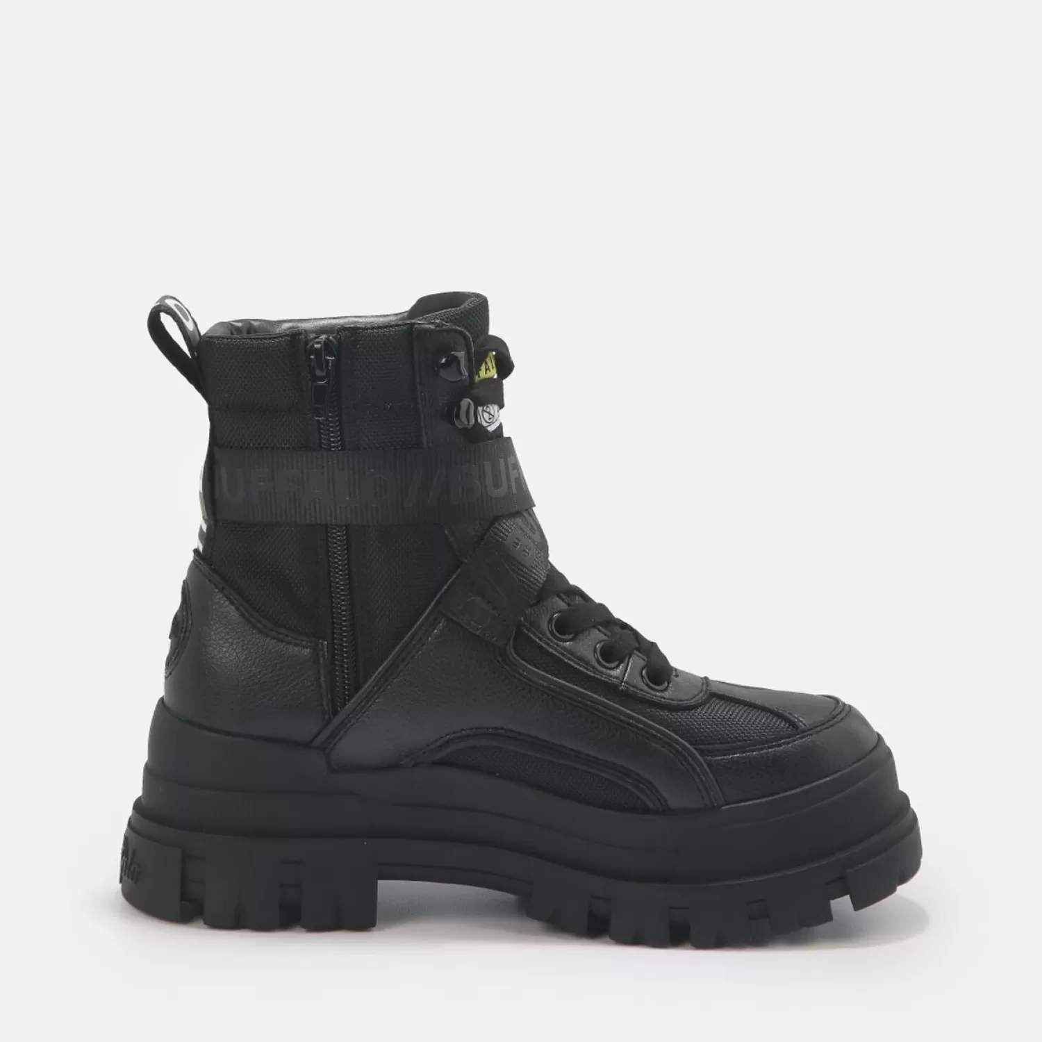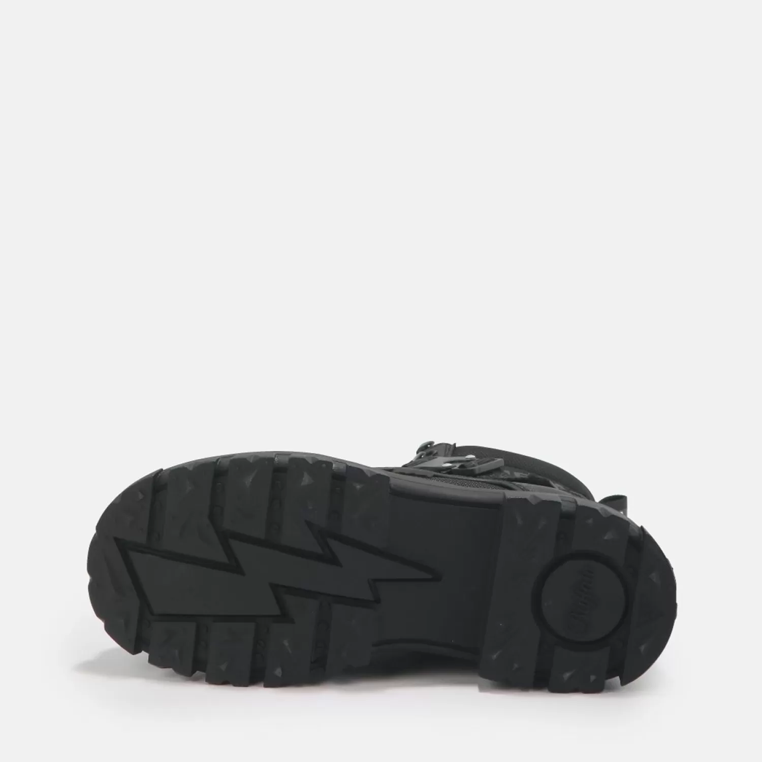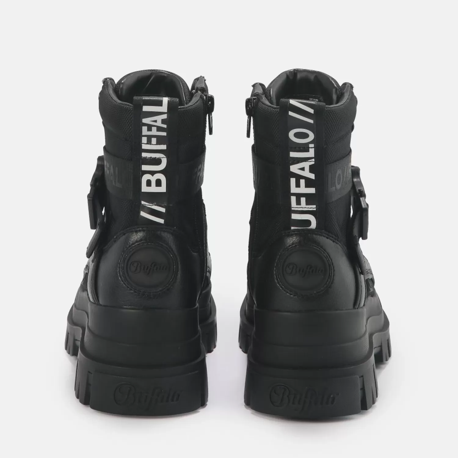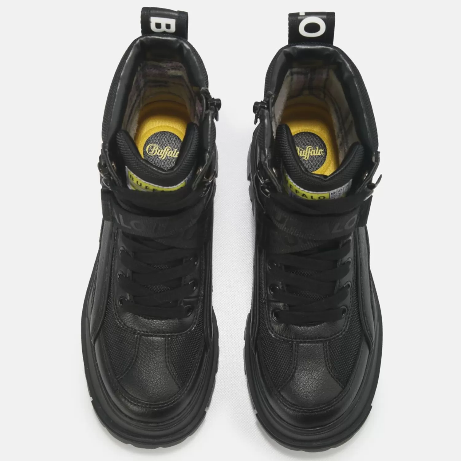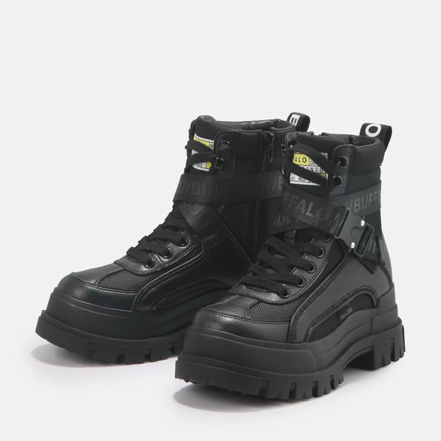 Nothing Will Knock You Down In The Aspha Com1 Men Ankle Boot. In Addition To A Secure Footing, The Thick Tread Sole Ensures A Self-Confident Gait That Will Make A Big Impression. The Rocking Buckle Also Signals To Others That They Need To Buckle Up With You. Features: Nappa Leather Look And Textile In Black Vegan Buckle And Zip Thick Treaded Sole Removable Memory Foam Footbed
