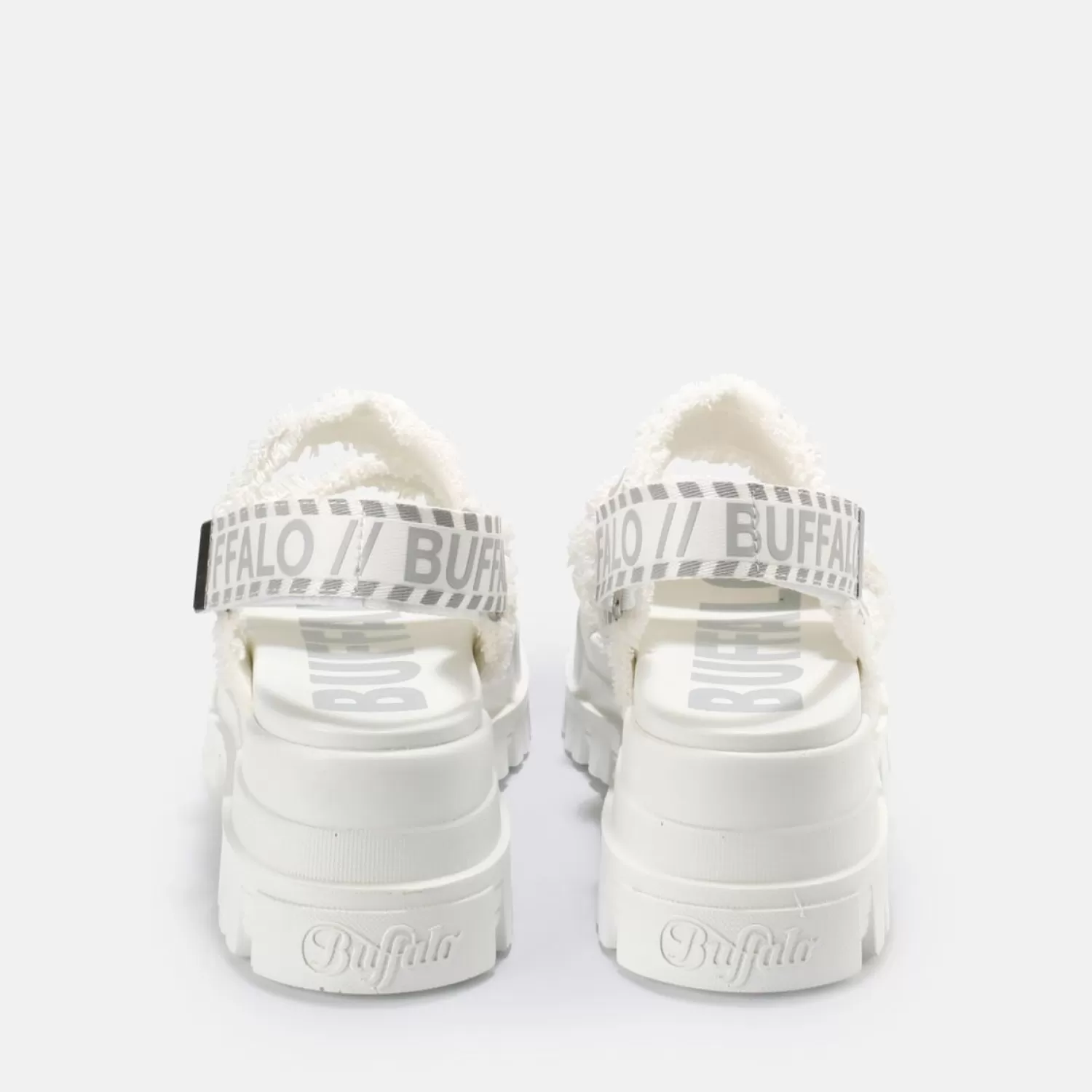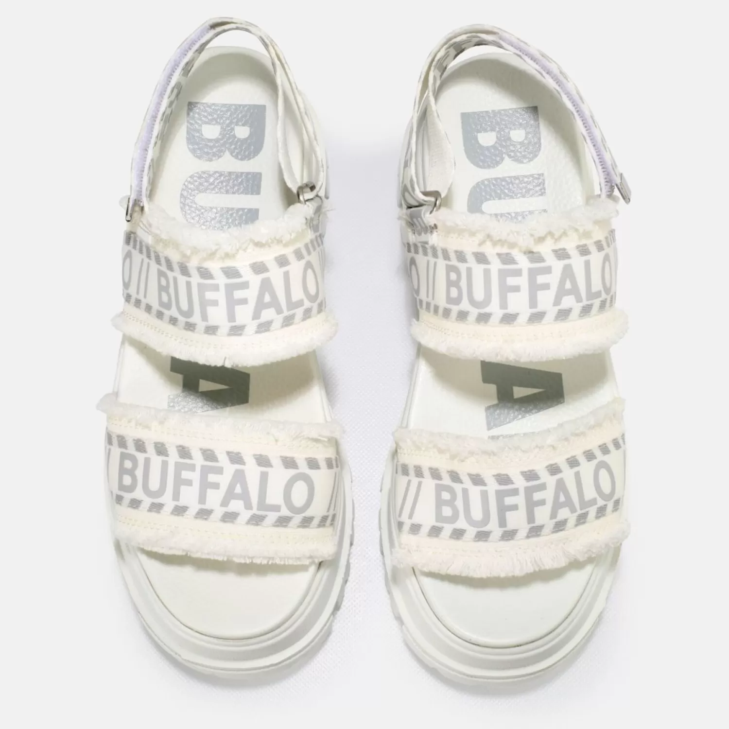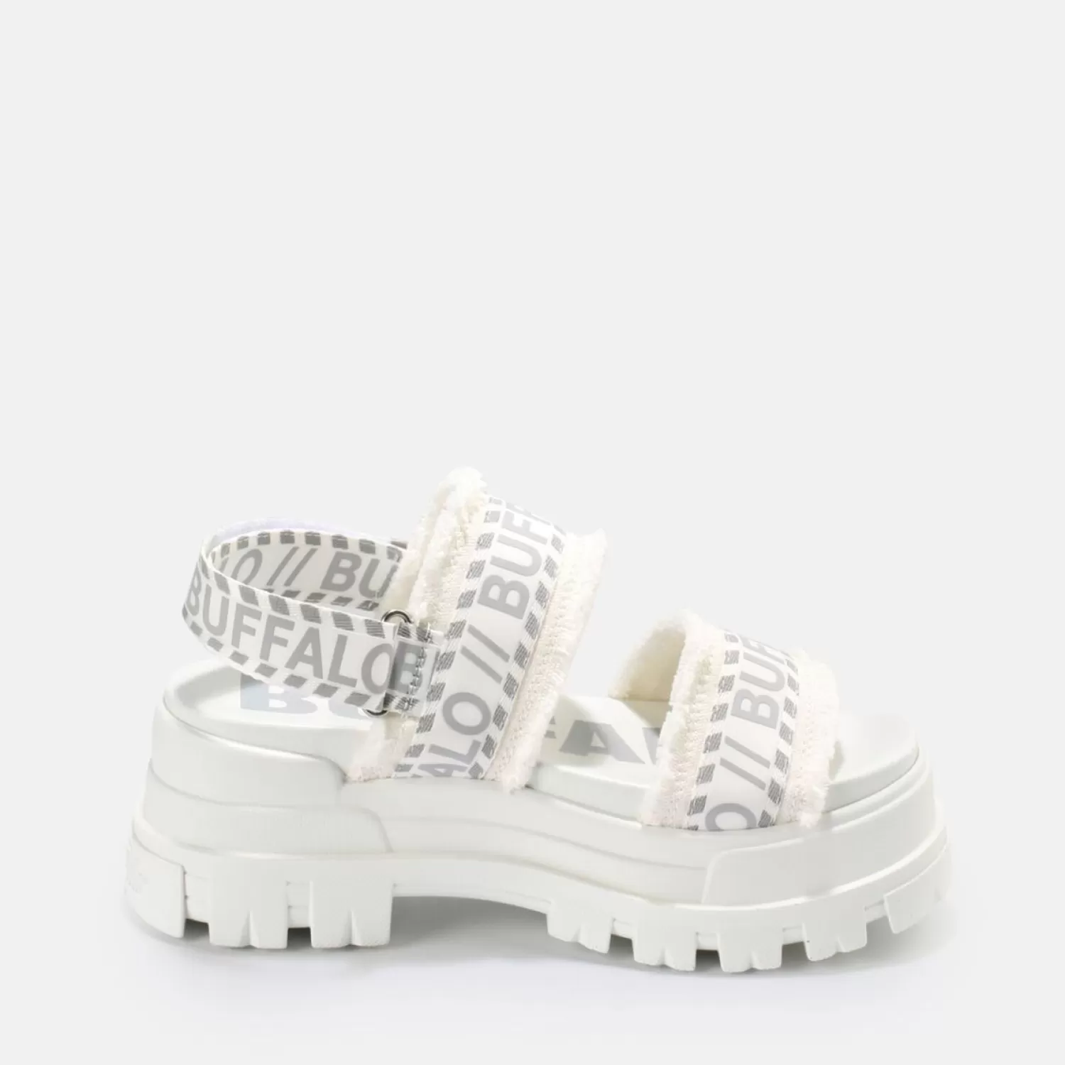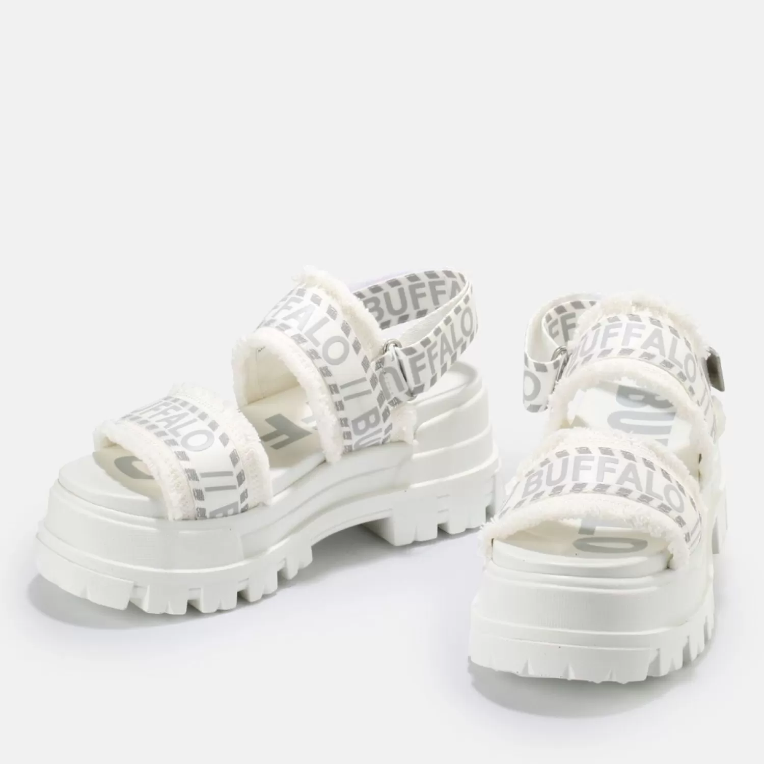 Shoelaces Are Not Your Thing? In That Case, You Should Update Your Wardrobe With The Aspha Str Platform Sandal That Will Make Your Life Easier With A Velcro Strap. However, Life Will Not Only Be Easier But Prettier Too: The Frayed Design With Bold Logo Patterning Tunes This All-White Look With Some Coolness Which Is Rounded Off By A Chunky Platform Sole. Features: White Fabric Vegan And Organic Frayed Velcro Strap With Logo Print Treaded Platform Sole Memory Foam