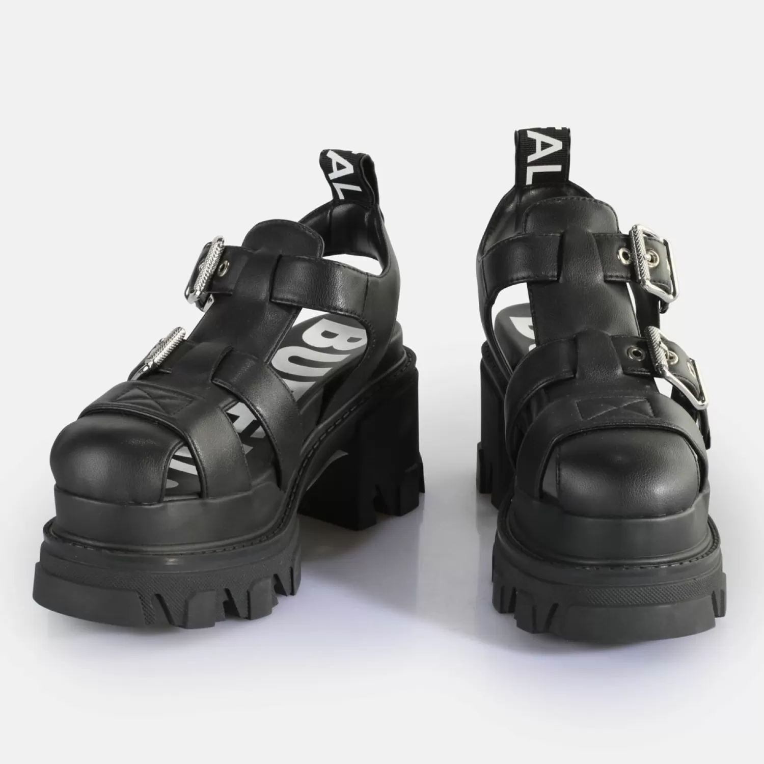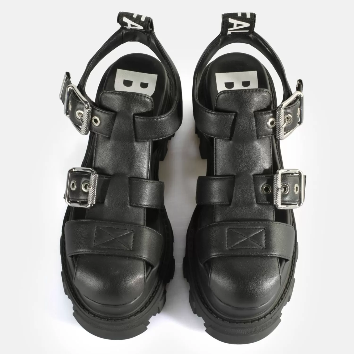 Ready For A New Look? The Riot Trawl Heeled Sandals Will Really Shake Up Your Wardrobe. That’S Because These Shoes In A Black Design With Eye-Catching Buckles Can Be Combined Easily With Light Summer Looks As Well As Punky Outfits. The Design Of These Vegan Sandals Made From Water-Based Material Is Rounded Off By An 8-Centimetre-High Sole, Which Makes These Shoes Real Eye-Catching. Features: Water-Based Lightweight Material Vegan Shoe In Black