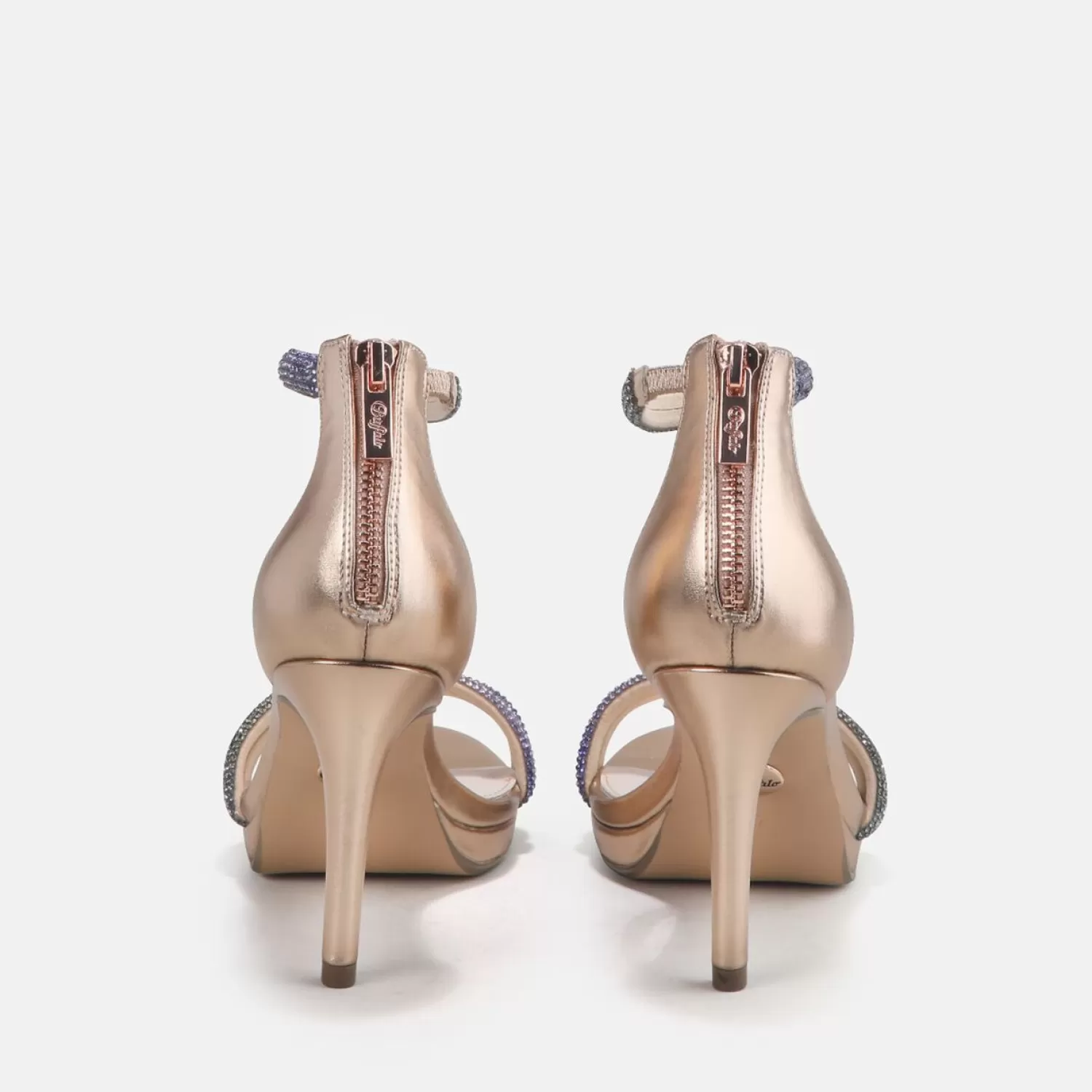 Make Sure You Don’T Lose This Golden Treasure! The Selma Heeled Sandal Will Take Your Breath Away, Thanks To The Sparkling Golden Colour. The Straps Decorated With Rhinestones Will Also Make You Unbelievably Glamorous. This Dreamy Shoe Will Enchant Your Feminine Figure And Keeps Your Foot Safe While You’Re Dancing The Night Away. Features: Faux Nappa Leather And Textile In Beige Vegan Strap With Rhinestones 9-Cm Stiletto Heel Memory Foam