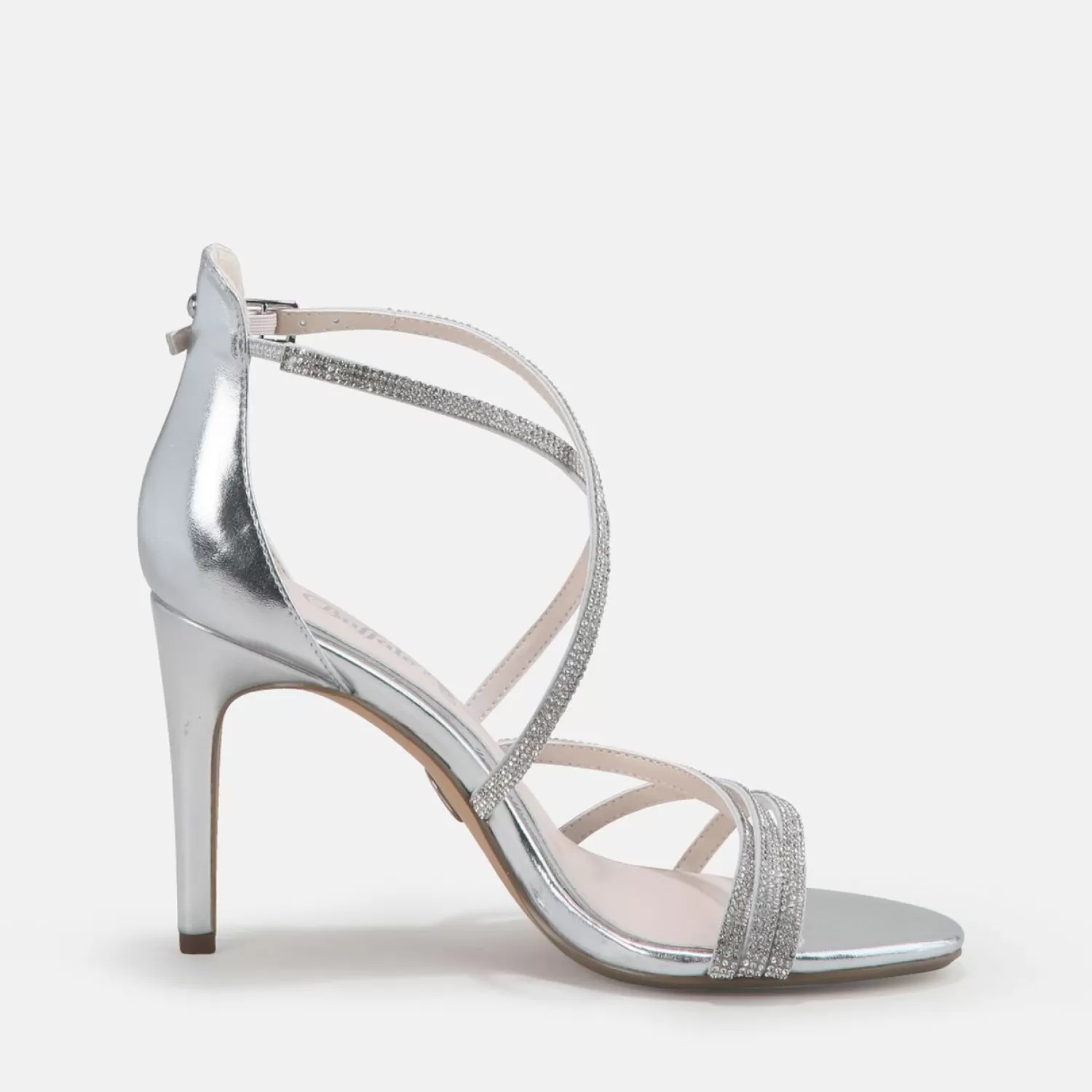 Are You Looking For A Companion For Attending A Wedding? The Makai 2 Heeled Sandal Is The Perfect Date For Noble Events That Require Glamour. Stylish Rhinestones Complements The Feminine Straps In Metallic Silver And Go Perfectly With Silver Jewellery And Cocktail Dresses. With These Trendy Shoes, You’Ll Be Asked On Many More Dates! Features: Faux Nappa Leather In Metallic Silver Vegan Straps With Rhinestones 9.5-Cm Stiletto Heel Memory Foam