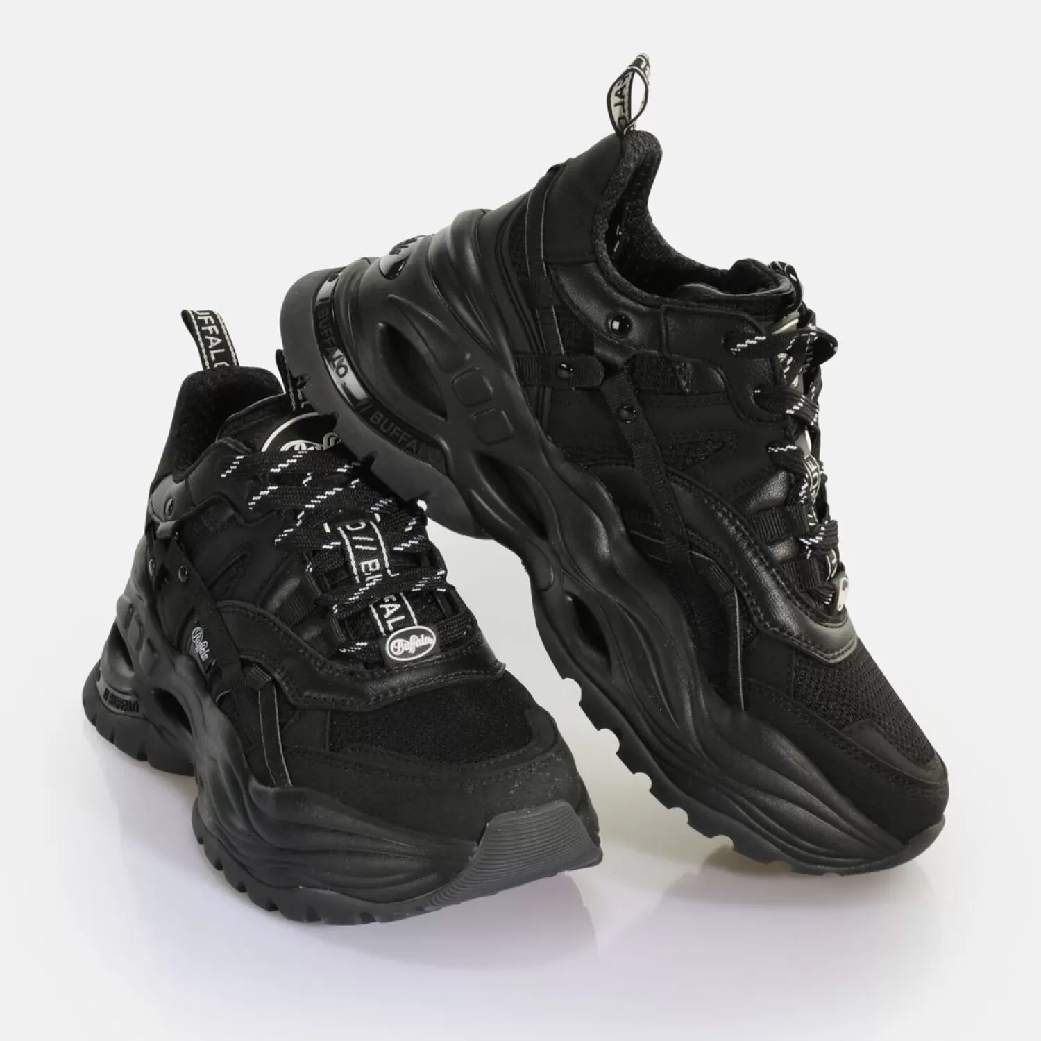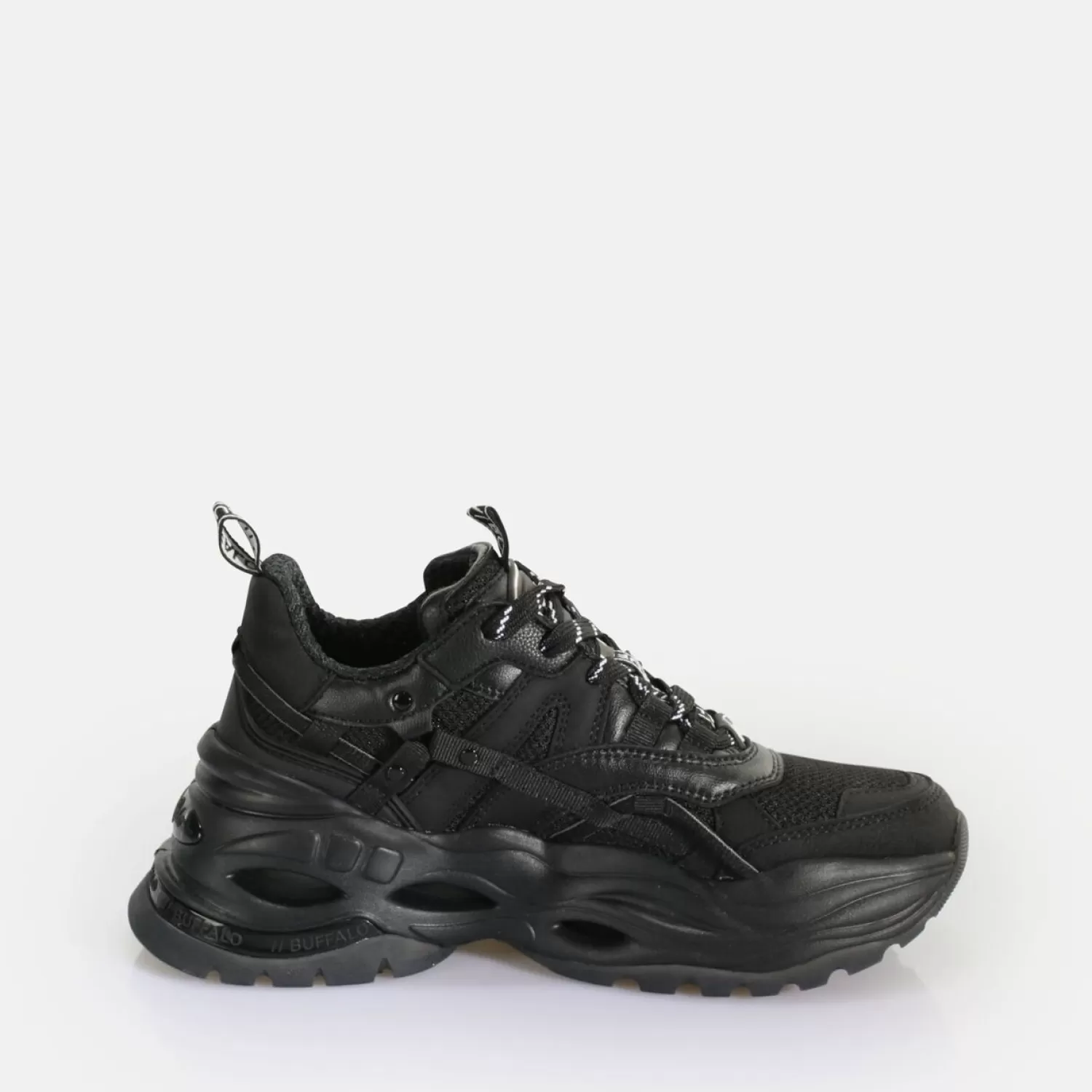 Not Plain, But Mysterious Is The Charisma Of The Black Triplet Hollow Sneaker Low For Women. The Black In Black Design O…