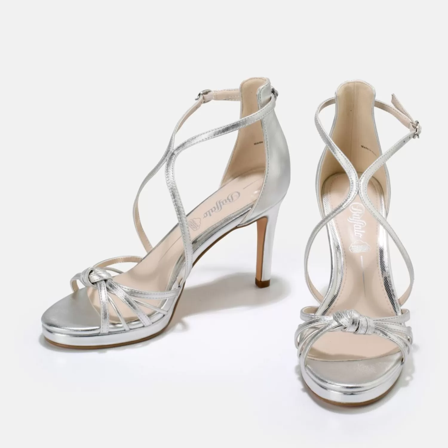 Especially Because Of Its Metallic Silver Colour, The Stylish Serena Bow High-Heeled Sandal Deserves The Gold Medal. Intricate Straps Elegantly Slither Up Your Foot And Set The Scene For Maximum Glamour, Whether You Wear Jeans Or A Cocktail Dress. To Top It All, This Must-Have Excites With Fancy Knot Details, Which Will Put All Eyes On You. Features: Nappa Leather Look In Metallic Silver Light And Vegan Design Straps With Knot Detail 9-Cm Stiletto Heel Memory Foam